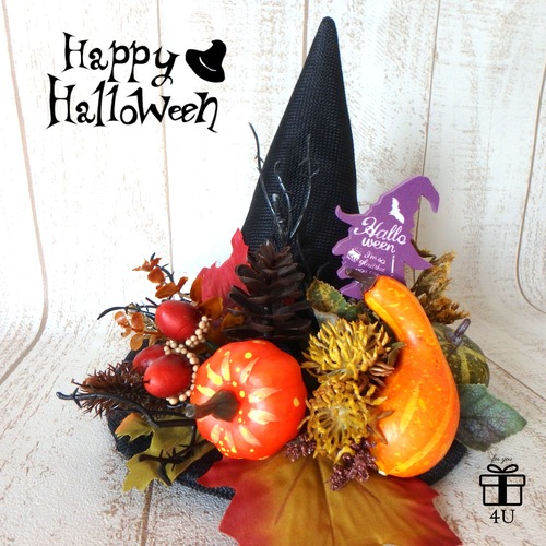 【ハロウィン2018】Halloween✳︎ 魔女帽子ハロウィンフラワーアレンジメント ハロウィン パンプキン 魔女