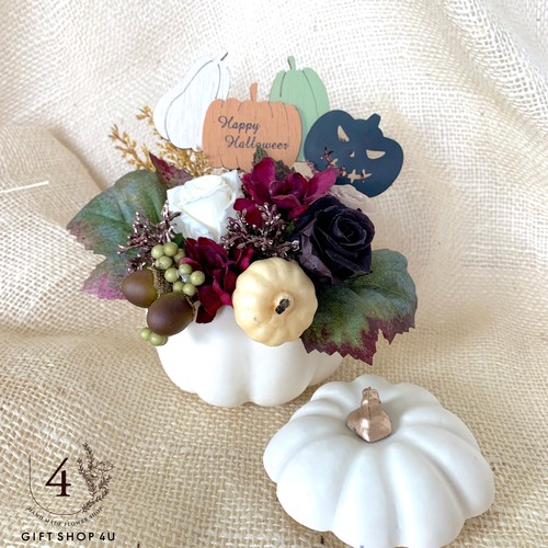 【ハロウィン】ホワイトゴールドのかぼちゃ プリザーブドフラワーアレンジメント♡ふた付(ホワイト)26