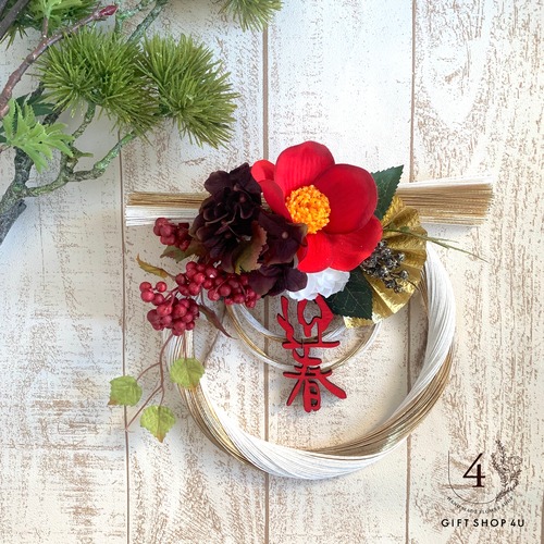 2019 玄関飾り リース ツバキ 赤 紅 紫 しめ縄飾り