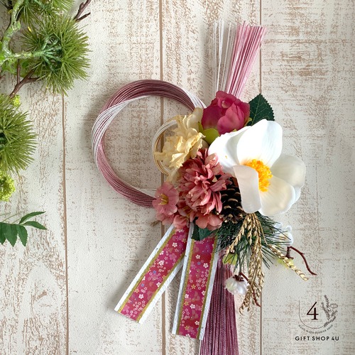 【お正月】お正月お飾り 高さ50cm 陽光水引飾り(ピンク)梅 胡蝶蘭 椿 和柄 しめ縄 リース しめ縄飾り 40