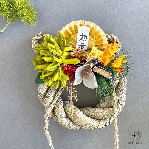 【お正月】 お正月お飾り 太縄の縁起の良い和風初春お飾り(グリーン×イエロー) 水引 ゴールド 和柄 33