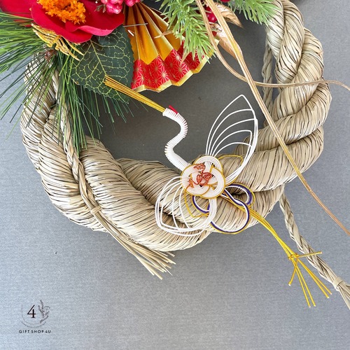 【お正月】 お正月お飾り 迎春紅白鶴の太しめ縄飾り W30H40(cm) 迎春 椿 紅白 19